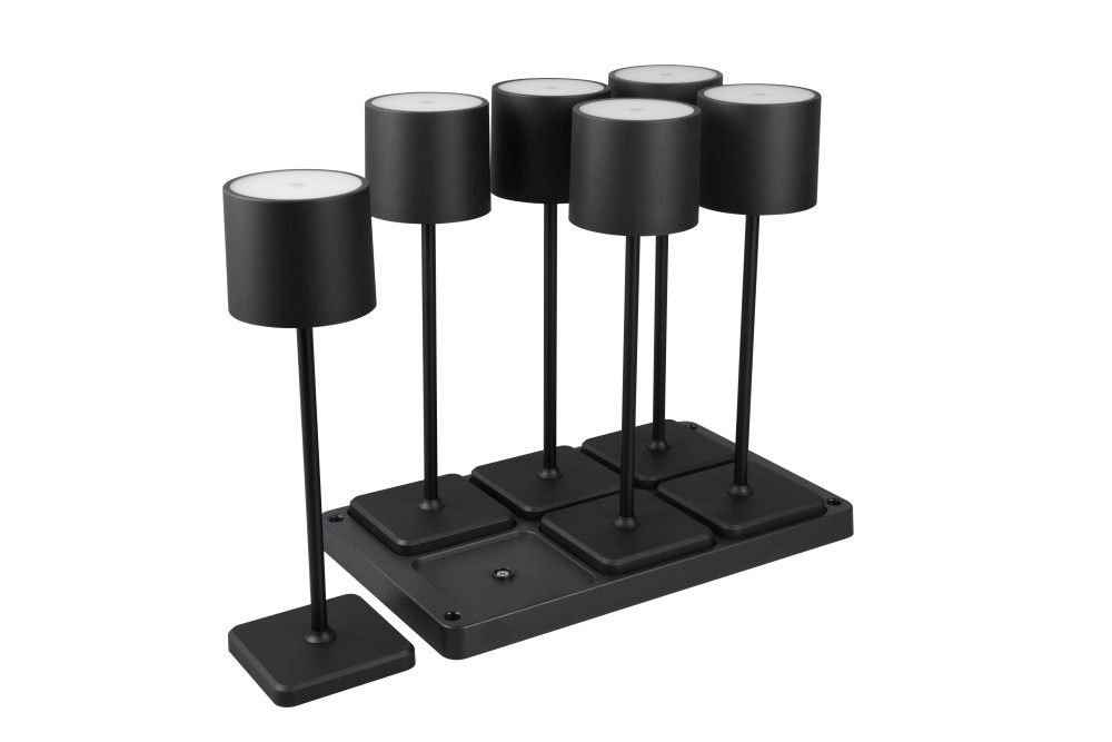 Trio Fernandez R54096632 6db-os tölthető kültéri asztali lámpa dokkolóval, 1,5W LED, 2700-4000-6000K, 130 lm, IP54