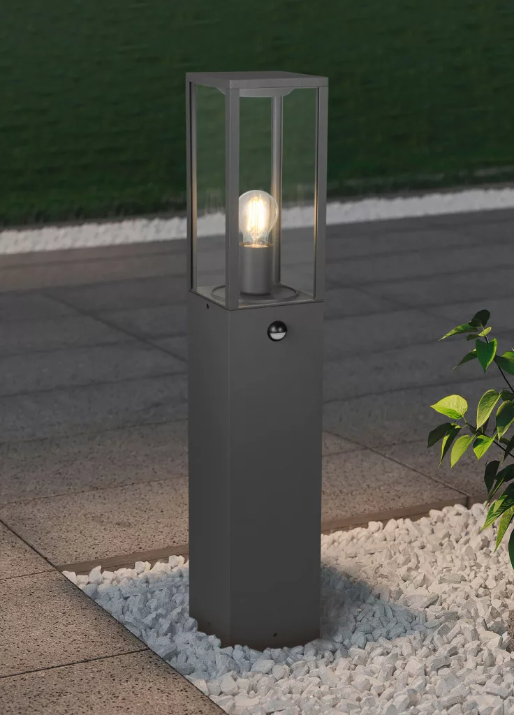 Trio GARONNE 401869142 mozgásérzékelős kültéri állólámpa, 1x60W E27, IP44