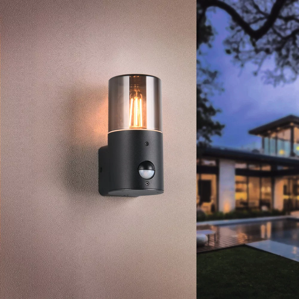 Trio HOOSIC 222260132 mozgásérzékelős kültéri falikar, 1x28W E27, IP44