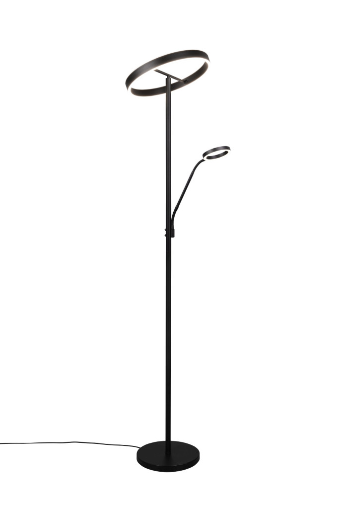 Beépített LED-es állólámpa matt fekete színben, olvasókarral, mely modern designjával vonza a tekintetet. Az innovatív formának köszönhetően különleges fényeket varázsolhatunk a szobába.
